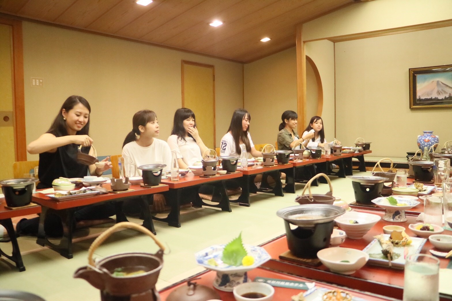 そして2日目の夜ご飯は、四代目氷屋徳次郎さんと、息子さん、そして日光市役所の方々と夜ご飯を頂きました。普段私達はなかなか大人の方々とゆっくり話す時間はなく、この時間はとても貴重な時間になり、産チャレを行なっていくうえでのアドバイスや、お互いの意見交換ができ、とても良い機会でした。ありがとうございました(*´꒳`*)